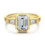 14K Yellow Gold Emerald Cut Three Stone Diamond Engagement Ring