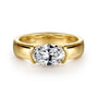 14K Yellow Gold Half Bezel East West Oval Diamond Engagement Ring